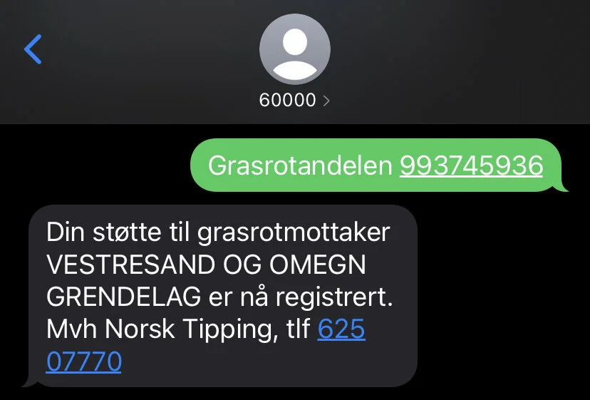 Eller send SMS; Grasrotandelen 993745936 til 60000